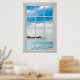 Faux Window White Wood Window Frame Caribbean View Poster