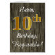 Ce simple design de carte d'anniversaire comporte le message "Joyeux 10e anniversaire", avec le "10e" ayant une apparence fausse or. Il est également doté d'un nom personnalisé et d'un arrière - plan d'apparence en faux bois. On pourrait le donner à quelqu'un qui célèbre son dixième anniversaire.
