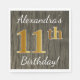 Faux Wood, Faux Gold 11th Birthday + Custom Name Napkin
