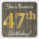 Faux Wood, Faux Gold 47th Birthday + Custom Name Square Sticker