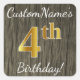 Faux Wood, Faux Gold 4th Birthday + Custom Name Square Sticker