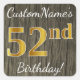 Faux Wood, Faux Gold 52nd Birthday + Custom Name Square Sticker