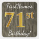 Faux Wood, Faux Gold 71st Birthday + Custom Name Square Sticker