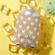 Customizable can cooler featuring white hearts pattern on faux wood background. Other colour and similar items are available in my store.