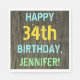 Faux Wood, Painted Text Look, 34th Birthday + Name Napkin