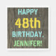 Faux Wood, Painted Text Look, 48th Birthday + Name Napkin