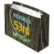 This fun birthday gift bag design features a message like "MICHAEL’S 53rd BIRTHDAY!", where the name can be personalized. The background features a rustic, brown, faux wood grain appearance pattern. The customizable message text features colours like blue, yellow, and green, and it has an appearance inspired by that of painted, stenciled lettering. A birthday-themed gift bag like this might be a fun, silly way to give a gift to somebody who is celebrating their fifty third birthday. [~Z0000319]