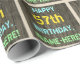 This fun birthday-themed wrapping paper design features a message like "HAPPY 57th BIRTHDAY, NAME-HERE!", where the name can be personalized. The background features a rustic, brown, faux wood grain appearance pattern. The customizable message text features colours like blue, yellow, and green, and it has an appearance inspired by that of painted, stenciled lettering. Wrapping paper like this could perhaps be used when wrapping birthday gifts being given to somebody who is celebrating their fifty seventh birthday. [~Z0000293]