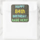 Faux Wood, Painted Text Look, 84th Birthday + Name Square Sticker