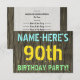 Faux Wood, Painted Text Look, 90th Birthday + Name Invitation