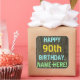Faux Wood, Painted Text Look, 90th Birthday + Name Square Sticker
