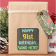 This fun birthday-themed sticker design features a message like "HAPPY 91st BIRTHDAY, NAME-HERE!", where the name can be personalized. The background features a rustic, brown, faux wood grain appearance pattern. The personalized message text features colours like blue, yellow, and green, and it has an appearance inspired by that of painted, stenciled lettering. Stickers like these could perhaps be given as a gift, or perhaps be used as decorations at a birthday party being held for somebody who is celebrating their ninety first birthday. [~Z0000296]