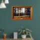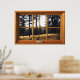 Faux Wooden Window Illusion - Autumn Pine Trees Poster