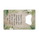 Découvrez la beauté de la nature avec notre ouvre-bouteille en forme de carte de crédit en bois avec bordure florale rustique - un mélange charmant de charme rustique et d'élégance botanique. Cet ouvre-bouteille unique présente une bordure de feuilles et de fleurs, complétée par des modèles de nom et de texte personnalisables, le tout sur un fond en bois lisse rustique.