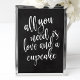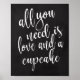 Une élégante enseigne de mariage à la pointe, avec le texte "Tout ce dont vous avez besoin est l'amour et un cupcake" dans une police de caractères script extrovertie, la texture de pinceau ajoute une sensation spontanée et ludique. La couleur de fond peut être personnalisée en fonction de vos besoins et préférences, veuillez me contacter si vous avez une demande spéciale.