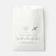 "Thanks for sharing this sweet adventure" personalized travel theme bridal shower or destination wedding paper favour bags feature a simple and cute romantic airplane heart monogram initial wedding logo design and retro inspired typography in editable grey and white that can be changed to match your event or kept in an understated minimal aesthetic shown.