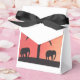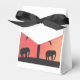This favour or gift box is designed with my depiction of two elephants and a palm tree silhouetted by an orange sunset sky, and it's ready for your shower or other special occasion.