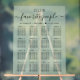 Elegant sage green wedding seating chart frosted acrylic sign for up to 16 tables featuring "our favourite people" in simple modern typography and a chic script with swashes and your first names and wedding date joined together by a heart.