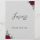 The Favour's red rose wedding sign from Twin Spirit Designs is an ideal addition to any wedding ceremony. The design has a grey backdrop, green foliage, and red flowers.