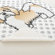Destei's original cartoon illustration of a cute fawn and white coat colour Bichon Havanais / Havanese breed dog. The background has a pattern of grey dog paw prints.