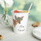 Add a woodland touch to your Christmas party or holiday gathering with these customizable paper cups. The design features a watercolor style illustration of a fawn deer or baby deer dressed for the season in a crown of evergreen boughs and holly. Use the template field to add your own greeting, name or personalized message to these paper cups. Find coordinating items in the Watercolor Winter collection from Asterisk Designs.