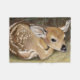 A colour pencil drawing of a tiny fawn is featured on this blanket.
