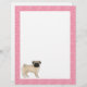 Fawn Pug Dog Cartoon Mops Love Heart Pattern Pink Letterhead