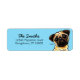 Personalize these cute Pug art labels with your info or delete the text and order them blank to print on your home printer. You can change the background colour (shown in blue) too! To change the background colour, click the orange "customize it!" button, then select the down arrow beside "edit", then "background" and select a background colour.