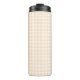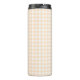 Introducing our Beige Gingham Thermal Tumbler, the perfect combination of style and functionality for your daily beverage needs! Made with a double-walled stainless steel body and plastic lid, this tumbler can hold up to 12 oz. of liquid in a sleek cylindrical shape. The vacuum-sealed double-walled construction helps keep your warm beverages warm and your cool beverages cool, all while keeping your hands comfortable. The low profile lid snaps tight to help prevent spills and the padded bottom gives extra grip so you can sip safely. The glossy white finish is the perfect backdrop to showcase the classic gingham pattern, adding a touch of charm to your on-the-go lifestyle. This tumbler fits most standard cup holders and is hand-wash recommended. Stay stylish and hydrated with our Gingham Thermal Tumbler!