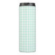 Introducing our green Gingham Thermal Tumbler, the perfect combination of style and functionality for your daily beverage needs! Made with a double-walled stainless steel body and plastic lid, this tumbler can hold up to 12 oz. of liquid in a sleek cylindrical shape. The vacuum-sealed double-walled construction helps keep your warm beverages warm and your cool beverages cool, all while keeping your hands comfortable. The low profile lid snaps tight to help prevent spills and the padded bottom gives extra grip so you can sip safely. The glossy white finish is the perfect backdrop to showcase the classic gingham pattern, adding a touch of charm to your on-the-go lifestyle. This tumbler fits most standard cup holders and is hand-wash recommended. Stay stylish and hydrated with our Gingham Thermal Tumbler!