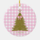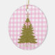 Add a touch of charm to your holiday décor with this beautifully crafted white porcelain ornament featuring a festive Christmas tree adorned with a soft pink ribbon, set against a classic gingham background. Designed with full-color, full-bleed printing on both sides, this lightweight 2.87" ornament brings timeless style to any tree. Durable yet delicate in appearance, it makes the perfect keepsake or gift. Thread is included but not tied, allowing you to customize the hanging style.