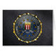Introducing the emblem of Federal Bureau of Investigation (FBI), recreated under umbrella of the “Military Insignia 3D Project” by C.7 Design Studio, featuring top quality heraldry designs. Here you will find designer apparel, accessories, custom postage and gifts decorated with insignia of the Bureau. The Federal Bureau of Investigation (FBI) is an agency of the United States Department of Justice that serves as both a federal criminal investigative body and an internal intelligence agency (counterintelligence). The FBI has investigative jurisdiction over violations of more than 200 categories of federal crime. Its motto is a backronym of FBI, "Fidelity, Bravery, Integrity".. The FBI was established in 1908 as the Bureau of Investigation (BOI). Its name was changed to the Federal Bureau of Investigation (FBI) in 1935. The FBI's main goal is to protect and defend the United States, to uphold and enforce the criminal laws of the United States, and to provide leadership and criminal justice services to federal, state, municipal, and international agencies and partners.