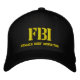 Fits well due to elastic edging, not adjustable. Good qualty material. Good quality embroidering. Subtle lettering (white on beige) just as my wife likes.