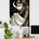 This Moon Keeper art also captures the allure of the night sky, thus blending intricate textures with a beautifully luminous crescent moon and a graceful goddess figure. Rich with fantasy elements and celestial charm, this design radiates wonderful mystery, magic, and romance. Ideal for dreamers, stargazers, and anyone drawn to the poetic beauty of moonlight and myth. clothing and dripping gold.