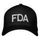 Fits well due to elastic edging, not adjustable. Good qualty material. Good quality embroidering. Subtle lettering (white on beige) just as my wife likes.