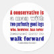 Slightly darker colours on this image in which Franklin Delano Roosevelt defines Conservatism: "A conservative is a man with two perfectly good legs who, however, has never learned how to walk forward."