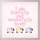 This nursery wall art print has three cute pastel lambs with scripture in pink from Psalms 139:14 that says "I am fearfully and wonderfully made" on kids t-shirts, buttons, stickers and more christian gifts for children and babies.