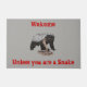 Make your guests laugh and salespeople quiver with this funny honey badger about to take on a cobra doormat design with the slogan 'Welcome, unless you are a snake'. Beware honey badgers really are the toughest animals on the planet. Honey badgers will take on lions, snakes and anything else that gets in their way. This honey badger and cobra doormat design is the perfect gift for animal lovers and those that admire these courageous animals. It celebrates the fact that 'Honey badgers fear no evil'. This design is full customizable so you can add you own slogan if you wish. Created by artist Catherine Sweetman