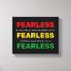 This is a strikingly vibrant piece of wall art with the word FEARLESS written three times - in red, yellow and green - against a rich black background. Inspirational verses taken from Psalms 27 and 56 are written in between in white typography. This canvas design would make an excellent gift for Christmas, for Birthdays, Mother's Day, Father's Day, for Black History Month, or as a motivational gift. This and other complementary items can be found in the FEARLESS Collection by Berean Designs.