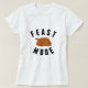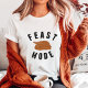 Time to get serious...feast mode ON! Funny Thanksgiving tee features "FEAST MODE" in black block lettering, with a delicious roast turkey illustration.