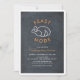 This minimalist and modern " feast mode " thanksgiving dinner invitation features a black chalkboard background with a turkey and bold and modern letterings. The reverse side features an orange background with wood patterns. Personalize it for your needs. You can find matching products at my store.