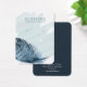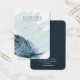 Stylish earring display holder with two printed hole markers is printed on an aquamarine blue brushed watercolor background. Subtle watercolored Feather accent . Hand painted look for a truly elegant display of your silver or stone earring masterpieces. Customize the font for the name of your business or use the elegant one here. Reverse shows your website and store address on deep Marine blue shade.