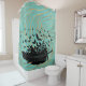 Gold and teal green feather of. Blackbirds, crows or Ravens shower curtain. Teal green colour combination of bids in flight. You can customize your colours and style to suit your bathroom curtain decor taste. Beautiful birds for the lovers of crows, ravens and black birds in fantasy.