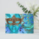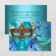 Feather Teal Gold Mask Masquerade Party RSVP Card