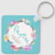 Watercolor native tribal boho feather and beads wreath personalized girls keychain. Personalize with your own name and name meaning. Currently reads Payton, Country warrior. Strong, determined & fortuitous. Pretty decorative art on a aqua background color which can be changed if required. Ideal for a free-spirited girl. © Original watercolor feather and bead art and design by Sarah Trett for www.mylittleeden.com and namesense on Zazzle.