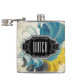 Feathers Black Blue Yellow Hipster Pattern Hip Flask