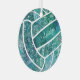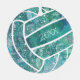 This pretty volleyball themed ornament features the outline image of a volleyball that has a delicate doodle pattern of paislies, flowers and feathers in white covering all but one of the volleyball's teal, textured-look panels - personalize with her name on the front, year on the back - by katz_d_zynes