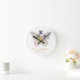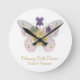 Bring a touch of timeless elegance and celestial beauty to your home with this exquisite wall clock. The design features a majestic butterfly with soft pink watercolor wings, delicately adorned with golden crescent moons and shimmering stars. At its center, a hand-drawn botanical bouquet showcases the Violet and Primrose, the official birth flowers for February.