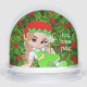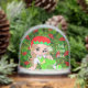 Fée d'elfe de Noël moderne mignonne tenant une fleur marguerite et texte Snow Globe. Le texte peut être personnalisé. Idéal pour noël, anniversaire, fête, baby shower et plus encore.