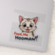 Featuring an adorable cat with big eyes and the playful phrase 'Feed Me, Hooman!', this sticker is perfect for adding a touch of humour and charm to your belongings, ideal for cat enthusiasts